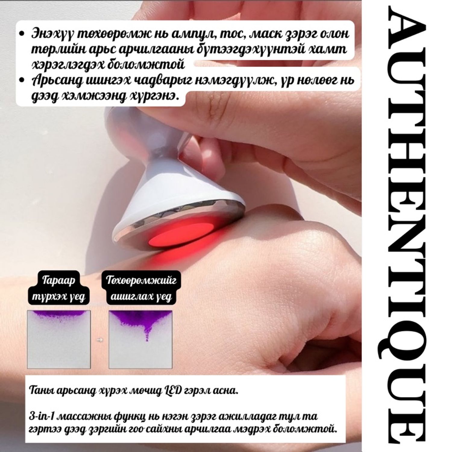 - Энэхүү төхөөрөмж нь ампул, тос, маск зэрэг олон төрлийн арьс арчилгааны бүтээгдэхүүнтэй хамт хэрэглэгдэх боломжтой бөгөөд арьсанд шингэх чадварыг нэмэгдүүлж, үр нөлөөг нь дээд хэмжээнд хүргэнэ.