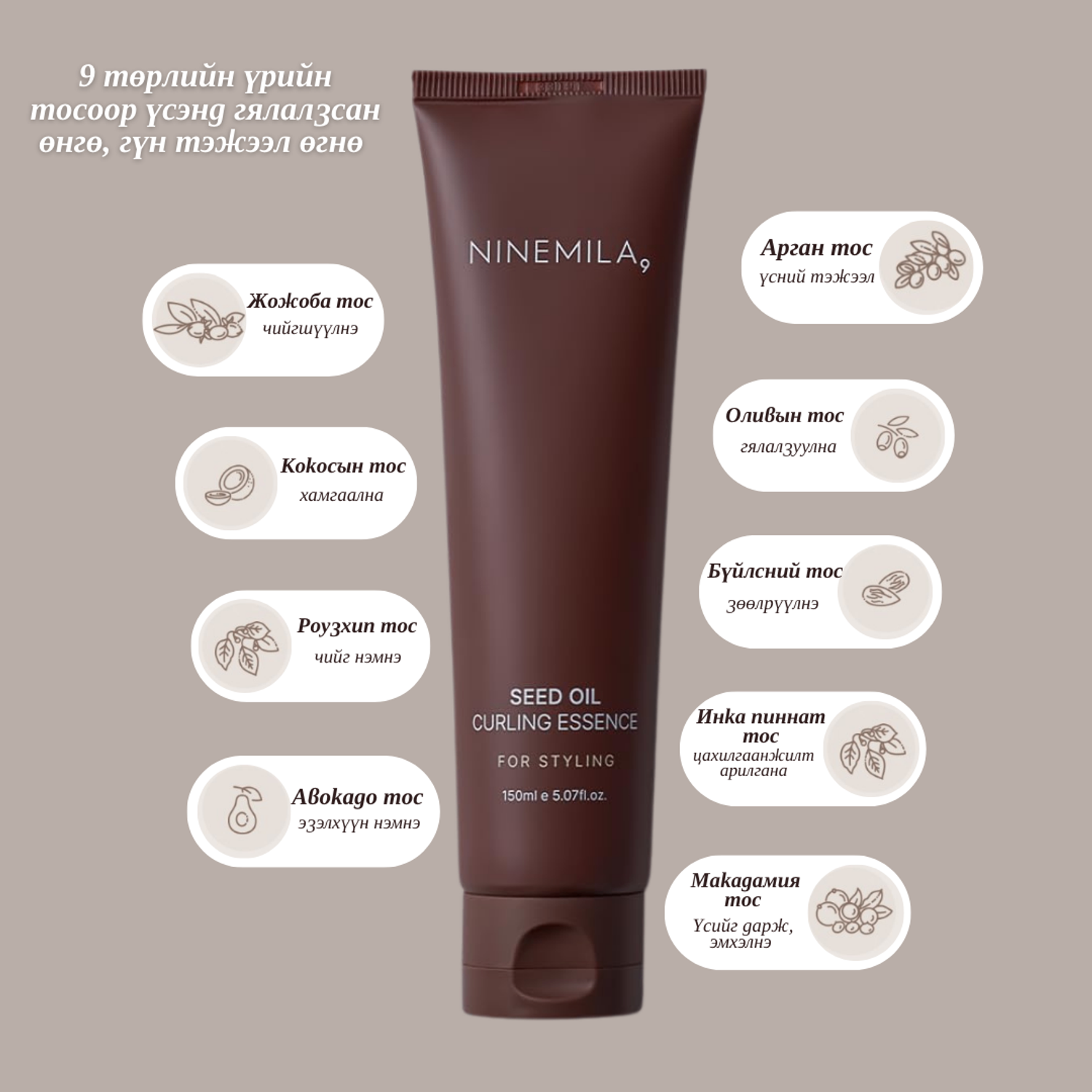 Nine Mila Seed Oil Чийгшүүлэгч Буржгар Үсний Эссенс