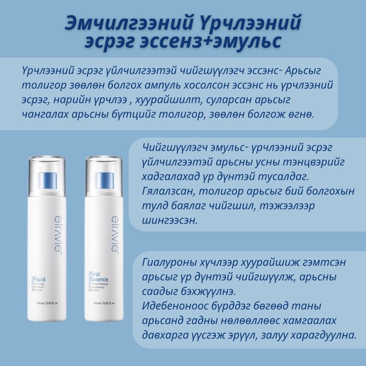 1. Үрчлээний эсрэг үйлчилгээтэй чийгшүүлэгч эссэнс- Арьсыг толигор зөөлөн болгох ампуль хосолсон эссэнс нь үрчлээний эсрэг, нарийн үрчлээ , хуурайшилт, суларсан арьсыг чангалах арьсны бүтцийг толигор, зөөлөн болгож өгнө.